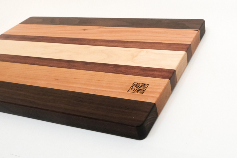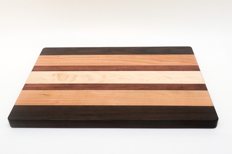 Unieke snijplank (handgemaakt), Walnoot, kersen, bubinga, esdoorn